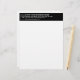 Letterhead que usted puede personalizar su encabezamiento para anunciar su negocio o promocionar su marca a clientes o clientes. Un suministro de oficina que se puede utilizar para crear conciencia sobre el nombre de marca. El diseño de la partida son textos blancos sobre fondo negro. Los contenidos del encabezamiento de este membrete son el logotipo de su empresa, el nombre de su empresa o negocio, la dirección, el número de teléfono, el correo electrónico y el sitio web.