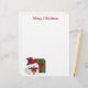 El original diseño festivo de Destei de dos cajas de regalo junto con un sombrero Santa rojo y blanco que tiene un Navidad Holly encima. Los diseños actuales de las cajas son blancos y verdes y ambos tienen un hermoso arco rojo. También hay un área de texto personalizable que ahora dice: "Feliz Navidad".