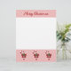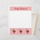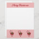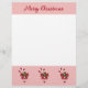 El ilustracion original de Destei de una caña de caramelo a rayas rojas y blancas Navidades a rayas decoradas con un arco rojo y una planta de Navidades holly / Common Holly. El color de fondo es rosa en la parte superior e inferior, mientras que el medio es blanco. También hay un área de texto personalizable que ahora dice: "Feliz Navidad".