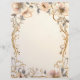 Una hermosa corona con crema polvorienta y flores rosadas con tendrilos dorados sobre un fondo de pergamino pálido hace de este papel de membrete perfecto para toda tu correspondencia. La parte trasera está lisa, con el mismo color de pergamino pálido que en la parte delantera.
