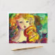 Carácter colorido, artístico y caprichoso, pintura acuarela vibrante en colores amarillo, rojo y verde .