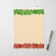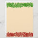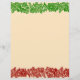 Christmas lacy red and green garland with white sparkles on beige background letterhead stationery.