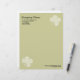 Un membrete comercial con un motivo de trébol atractivo y elegante en las esquinas superior derecha e inferior izquierda de la página, colocado a media pulgada de los bordes.