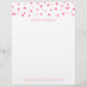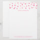 Este dulce membrete presenta confeti de corazones dispersos en diferentes tonos de rosa sobre un fondo blanco.