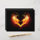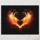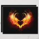 Ángel dispara el corazón con las alas flameantes sobre fondo negro.