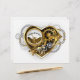 Corazón mecánico, volumétrico, de vapor punk con manómetro de presión, acero y engranajes dorados sobre fondo blanco. Estilo Steampunk.