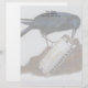 Un dibujo a lápiz de color de un curioso cuervo que investiga una armónica brillante adorna este personalizable estacionario.