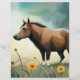 Membrete Cuto pony marrón en el campo floral