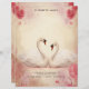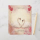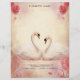 Elegante, rústico y caprichoso membrete con ilustraciones acuarelas de cisne blanco bonito y flores rosadas rojas sobre fondo de papel antiguo vintage. Este bloc de notas inspirado en el amor es perfecto como regalo personalizado.