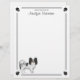 El ilustracion personalizado original de Destei de un perro de raza Papillon color abrigo tricolor. El perro se coloca en un rincón y el diseño está enmarcado por bordes que tienen una huella de pata de perro en cada esquina. En la parte superior hay dos áreas de texto personalizables.