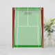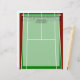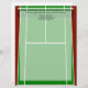 El ilustracion gráfico de la pista de tenis cuenta con una disposición de la pista en perspectiva con red negra, campo verde y líneas blancas con zonas de "fuera" de color rojo oscuro. Ideal para las ventas de tenis o de deportes y fitness, marketing, motivación o negocio de salud y bienestar. Disponible como un completo conjunto personal o de negocios que incluye invitaciones a eventos o torneos, tarjetas de presentación, pegatinas, etiquetas y más!
