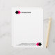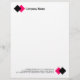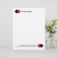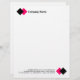 Diseño de una plantilla de membrete Business con un motivo decorativo doble cuadrado de dos tonos o con forma de diamante colocado en la esquina superior izquierda a 1/2 pulgadas de los bordes del papel y también en la esquina inferior derecha donde se gira el motivo para que se inviertan los tonos. Nombre de la empresa alineado al lado del motivo superior con los datos de correo electrónico, web, dirección y teléfono alineados al lado del motivo inferior. Este sencillo pero atractivo diseño profesional puede ser personalizado de muchas maneras.