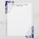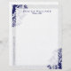 Elegante encaje floral azul marino sobre fondo blanco, plantilla de membrete de personalizable