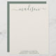 Un elegante estilo moderno manuscrito Sage Green Letterhead combina la sofisticación con un toque fresco y contemporáneo. El suave color verde sabio combinado con la escritura manuscrita moderna y fluida crea un estilo elegante y refinado. Este membrete es perfecto para empresas que pretenden transmitir un sentido de elegancia y creatividad mientras mantienen una apariencia profesional en su correspondencia oficial.
