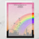 Negro, naranja de coral y fondo moteado rosado caliente, con un arcoiris colorido y silueta en el horizonte del centro de la ciudad con una bandada de pájaros volando y doodles bonitos. Este artículo está disponible como una colección completa de correspondencias que incluye invitaciones, imanes, Pegatinas, tarjetas de visita, Binders y más!