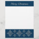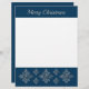 El diseño original de Destei de copos de nieve decorativos en una textura de Relieve metalizado gris plateado falsa sobre un color de fondo azul. También hay un área de texto personalizable que ahora dice: "Feliz Navidad". AVISO: El diseño es una imagen creada digitalmente que se imprimirá en el producto.