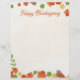 Un membrete con temática de Acción de Gracias bordeado con hojas otoño en rojo, oro, verde y amarillo, entre bellotas sobre un fondo beige claro. También es genial para los membretes que envías en otoño, ya que el texto puede ser editado para eliminar la referencia al día de Acción de Gracias.