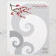 Membrete Flores de cerezo rojo Sakura y espirales grises