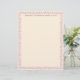 Pequeñas y suaves flores rosadas recorren todos los lados de esta papelería con membrete de color pergamino. Muy femenino y de aspecto vintage. El reverso es el mismo color de pergamino que el frontal, sin texto ni borde.