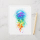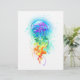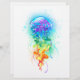 Gran medusa de gelatina, de dibujo artístico y brillante, con largos tentáculos sobre blanco, pintados con fondo multicolor de acuarela. Marisco arcoiris.