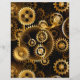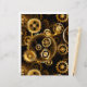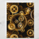 Sin soldadura, metalizado, latón, engranajes dorados sobre un fondo oscuro y oxidado. Estilo Steampunk.