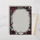This stationery is beautiful and vintage-looking with dark red, black, and bright white flowers, gray foliage, a gray skull, and an ornate Gothic frame. Personalize with your monogram in an alabaster white badge at the bottom. Very striking and darkly romantic design.