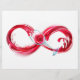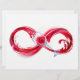 Símbolo infinito de flujo continuo de vino tinto vertiendo en vidrio de vidrio sobre fondo blanco.