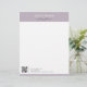 Clásico QR Code Lavender personalizado membrete Hacer una impresión duradera en el ámbito profesional con nuestro Clásico QR Code Personized Letterhead. Combinando elegancia intemporal con funcionalidad moderna, cada hoja es un testimonio de sofisticación y personalización de marca de negocios. Aumente las comunicaciones de su empresa con el membrete personalizado clásico del código QR profesional. Pida su conjunto personalizado hoy mismo y fusionar perfectamente la tradición con la innovación. 1.ᵉʳ