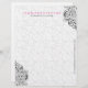 Elegante encaje floral negro sobre fondo de damasquinados blancos.