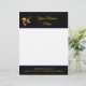 Papel membretado para Rosa Roja Floral Negra Hoja Dorada Elegante y con Clase. Tarjeta de presentación profesional, ornamentada y con clase, y deslumbrante. Zizzago creó este diseño POR FAVOR TOME NOTA todas las imágenes planas! No tienen Purpurina Dorada Real, Diamantes Joyas ni Lazos Reales!!