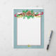 Papel de papelería para escribir cartas de vacaciones decoradas con conos de pino, ramas verdes, bayas y una cinta borgoña con un borde gris pintado con acuarela.