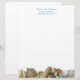 Papel con membrete en el borde de la concha. El membrete comercial o personal tiene un borde tropical en la parte inferior. La fotografía incluye conchas de olivo, caracol de sol, caracol lunar, cócteles y un erizo de mar. El texto azul claro, central top, está en forma de plantilla para personalizar o eliminación con facilidad.