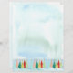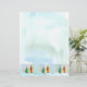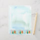Papel navideño para las cartas navideñas que presenta un diseño de inspiración vintage con formas de árbol de vacaciones en rocas de nieve en suaves tonos de esmeralda, rosa de caramelo de algodón, amarillo dorado y más con un fondo de agua azul helado.