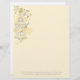 Una pareja de pájaros amorosos en un dibujo gráfico de jaulas de pájaro abierto colgando de un árbol primaveral floreciente con corazones de color gris y amarillo canario. Dibujo y diseño único de Sarah Trett.