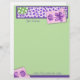 Este membrete floral de cuadernillo en púrpura y verde sería perfecto para cualquier tipo de negocio Shabby Chic o Cottage. También es genial para Scrapbookers o Florists.