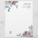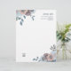 Flores polvorientas azules y rosa salmón de estilo femenino decoran los bordes superior izquierdo e inferior derecho con el nombre de su empresa y los detalles de contacto alineados a la derecha en la parte superior. Intercambie fácilmente su logotipo por el lado inferior izquierdo. Todo el texto se puede personalizar y también se puede cambiar el estilo y el color del tipo de letra a través de la opción de clic en personalizar más adelante Si así lo desea.