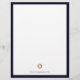 Una lujosa plantilla de membrete comercial personalizado de estilo moderno con un elegante borde azul marino que se puede actualizar fácilmente con el logotipo de su empresa y pie de página de membrete, incluyendo el nombre y el lema de su empresa. La parte posterior muestra su logotipo con espacio para su dirección de sitio web, teléfono, correo electrónico o cualquier otra información, incluidos los nombres de usuario de las redes sociales. Cada hoja exuda profesionalismo y sofisticación, haciéndolo perfecto para correspondencia oficial, facturas o documentos comerciales importantes.