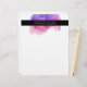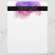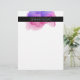 Elegante diseño moderno de membrete muestra tu nombre y/o nombre de negocio con dos líneas de información de contacto en blanco sobre una banda negra, colocada sobre un elemento acuarela de tinta en rosa fucsia, magenta y morado.