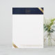 Este diseño presenta elegantes y profesionales bordes de cuero color azul marino texturados, con acentos dorados minimalistas y monograma de personalizable y plantilla para membrete personalizado con logotipo. Perfecto para la marca corporativa de lujo, empresas que buscan suministros de oficina premium y de alta calidad para clientes, empleados o ejecutivos.