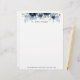 Papel acuarela floral de membrete con peonías azul marino pintadas de acuarela con plantas de eucalipto de color plata y azul polvoriento.