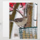 Un Mockingbird disfruta de una cena en un día de nieve.