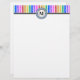Personaliza tu papelería con este sencillo y moderno membrete de rayas de color arcoiris. Edite el monograma para hacerlo propio. El diseño presenta rayas multicolores con un mosaico de acuarela en cada línea de color.