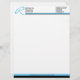 © 2021 Socialite Designs Inc. El diseño profesional de membrete empresarial incorpora un encabezado y pie de página azul-negro y un monograma de encabezado azul. Por favor, contacte con el diseñador independiente, Socialite Designs, si desea ayuda en la personalización de este diseño de membrete.