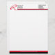 © 2021 Socialite Designs Inc. El diseño profesional de membrete empresarial incorpora un encabezado y pie de página rojo-negro, y un monograma de encabezado rojo. Por favor contacte con el diseñador independiente, Socialite Designs, si desea ayuda en la personalización de este diseño de membrete.