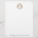 Cuta estampación personalizada de color de agua para niños con arco iris boho con mostaza rosa y arcoiris azul con corazón rosa en el medio y nombre. Añade tu dirección al final del papel.