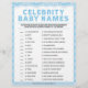Coincide el nombre del bebé con sus padres famosos. ¡Ganan las respuestas más correctas! Por favor contáctenos directamente si necesita una copia de las respuestas para este juego. Estaríamos encantados de dársela a cualquiera que haya ordenado el juego.