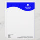 Diseño de membrete empresarial con un encabezado de estilo de onda audaz. Nombre de la empresa y tipo de negocio o eslogan en el encabezado junto con un monograma que por supuesto se puede cambiar o reemplazar alternativamente con su logotipo o incluso un símbolo decorativo. La dirección junto con la dirección URL de la web, los números de correo electrónico y teléfono se alinean en la parte inferior con un margen de 1/2" a la izquierda y a la derecha. Listo para ser personalizado. Esta plantilla también le permite cambiar el color de la cabecera modificando el color de fondo.