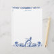Este papel con membrete está listo para ser personalizado con tu nombre u otro texto en la parte superior con un motivo floral azul y blanco con acento de pájaro en el fondo que está inspirado en patrones vintage de china azul y blanca. Hay un motivo floral de coordinación en la parte superior del reverso. Cree algún papel personalizado para usted o utilice este papel para incluir información adicional con invitaciones de boda.