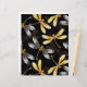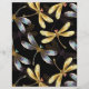 Patrón sin foco con oro, joyas, libélulas brillantes con las detalladas alas brillantes sobre fondo negro. Dragonfly de oro.