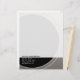Un membrete moderno que hará que usted o su negocio destaquen. El diseño se basa en enormes círculos metálicos que incluyen su carta. El fondo se divide en dos secciones horizontales, que se pueden ajustar o incluso simplificar eliminando la capa semitransparente.